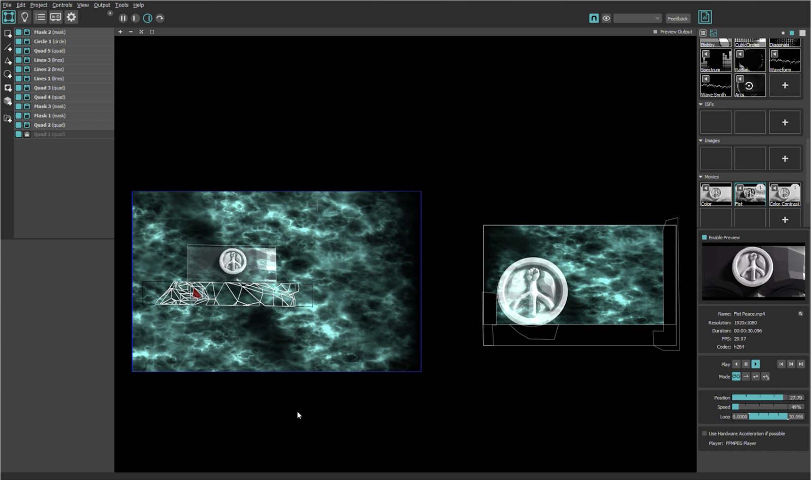 After setting up the work station to make the projector to cover the whole space, it was time to put our content into madmapper and let it come alive on the wall!